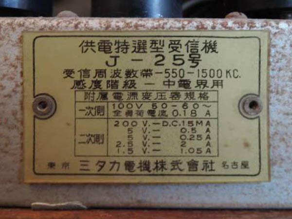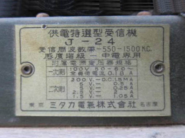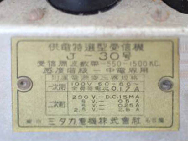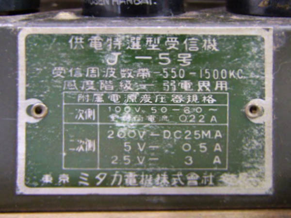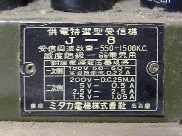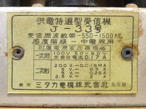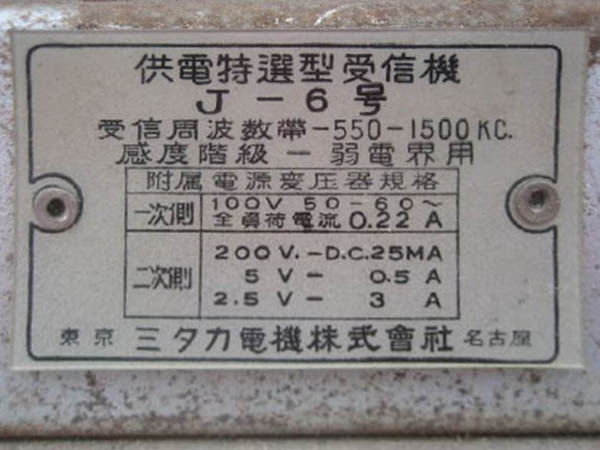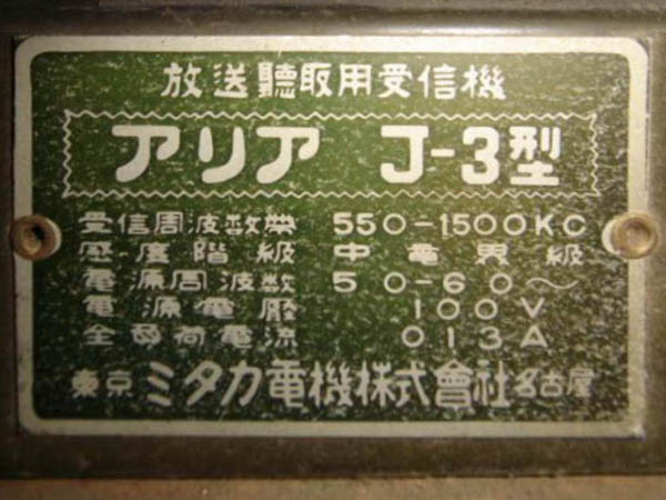 | J-3 | 昭和13年(1938) ストレート(57-12A-12F) 「ラジオ年鑑 1940」 |