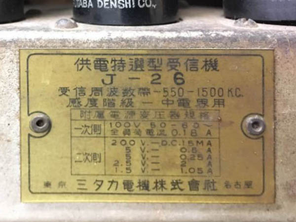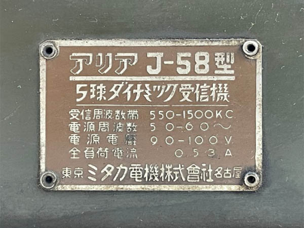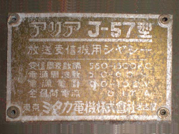 | J-57 | 昭和13年(1938) ストレート(57-26B-12A-12F) 「ラジオ年鑑 1940」 |