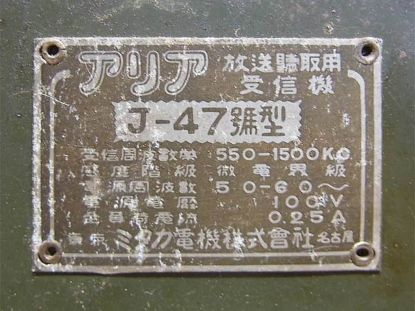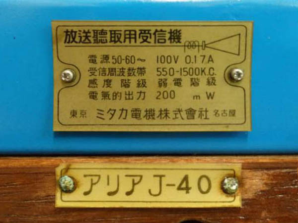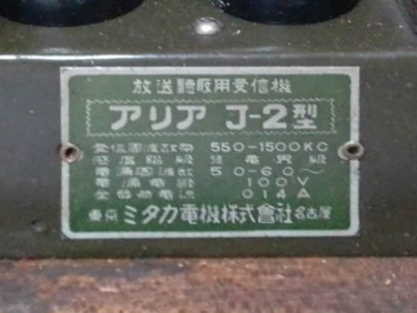 | アリア 真空管ラジオ 『J-』 シリーズ |