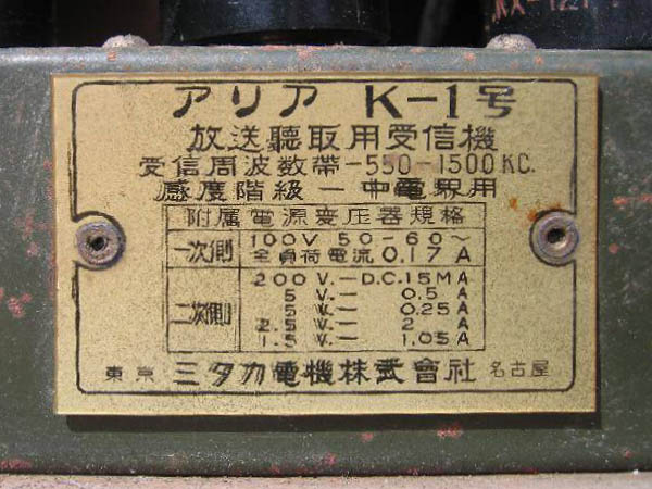 アリア 真空管ラジオ