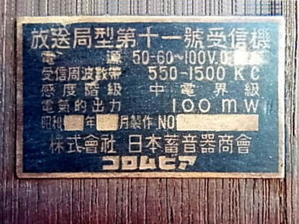 | 放送局型受信機 第1号、第3号、第11号 | |
