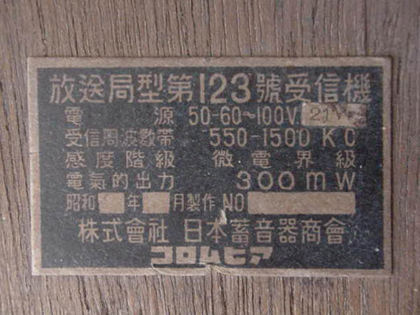 | 放送局型受信機 第11号、第122号、第123号 |