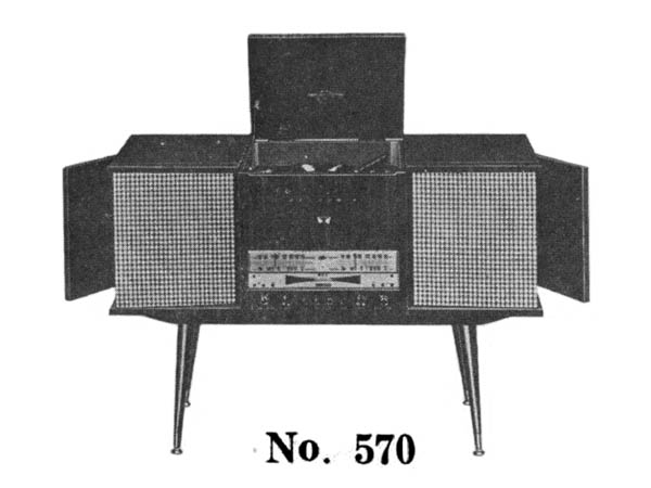 | 570 | 昭和36年(1961) スーパー(6BE6x2-6BA6x2-12AX7x3-6AR5x4-6RK16-6GE12)/木箱/電蓄 |