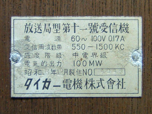 昭和13年(1938) ストレート(58-57-47B-12F) タイガー |