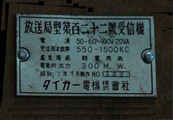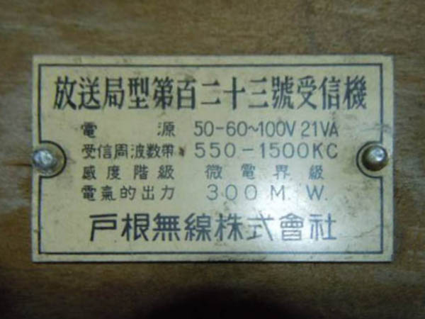 | 放送局型受信機 第11号、第122号、第123号 |