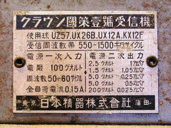 クラウン 真空管ラジオ