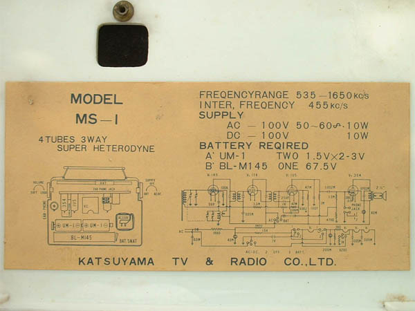 | MS-100 | 昭和32年(1957) スーパー(1T4SF-1R5SF-1T4SF-1U5SF-3S4SF)/ポータブル |