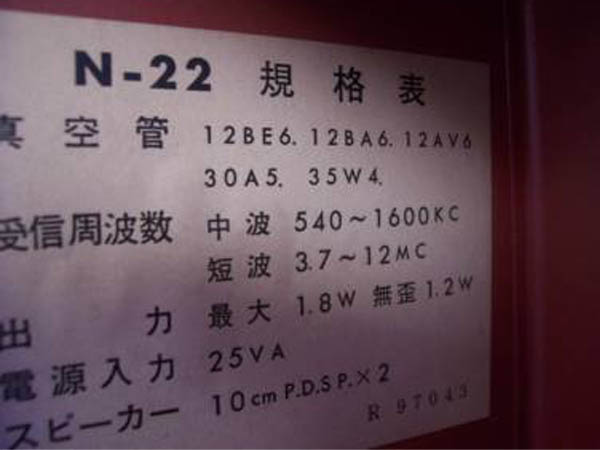 | N-22B | トランジスタラジオ/MW/SW | |||||