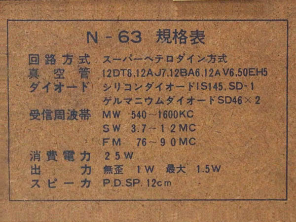 | N-63 | スーパー(12DT8-12AJ7-12BA6-12AV6-50EH5)/プラキャビ | |||||