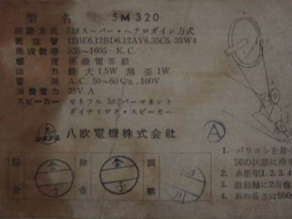 | 5M320 | 昭和31年(1956) スーパー(12BE6-12BD6-12AV6-35C5-35W4)/プラキャビ |