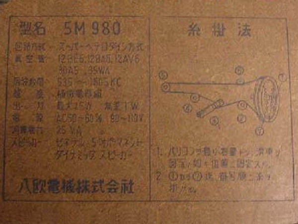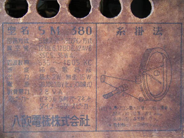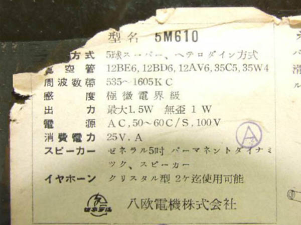 | 5M610 | スーパー(12BE6-12BD6-12AV6-35C5-35W4)/プラキャビ |