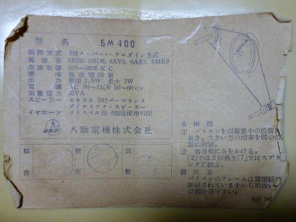 | 5M408 | スーパー(12BE6-12BD6-12AV6-35C5-35W4)/プラキャビ |