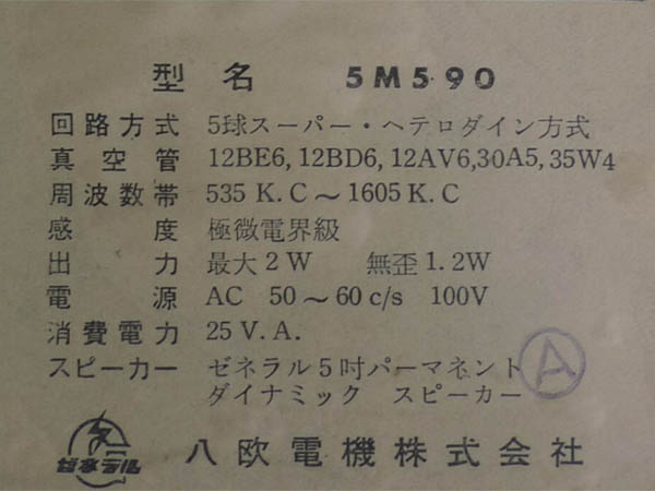 | 5M790 | スーパー(12BE6-12BD6-12AV6-35C5-35W4)/プラキャビ |