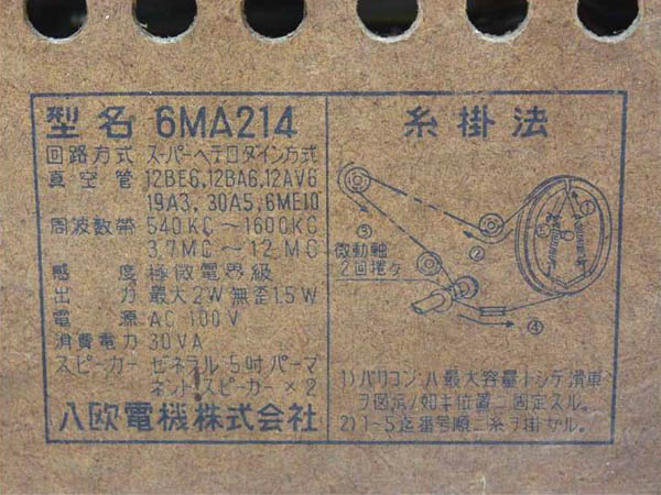 | 6MA214 | スーパー(12BE6-12BA6-12AV6-30A5-19A3-6ME10)/プラキャビ | |||||