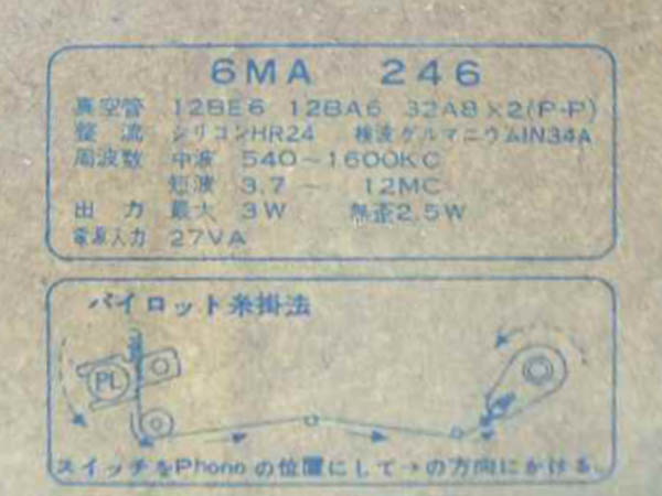 | 6MA246 | 昭和37年(1962) スーパー(12BE6-12BA6-12AV6-32A8x2)/プラキャビ |