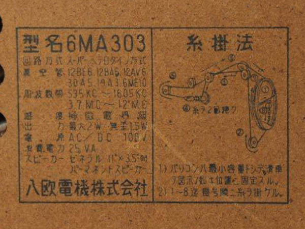 | 6MA303 | スーパー(12BE6-12BA6-12AV6-30A5-19A3-6ME10)/プラキャビ |