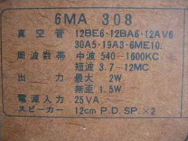 | 6MA308 | スーパー(12BE6-12BA6-12AV6-30A5-19A3-6ME10)/プラキャビ | |||||