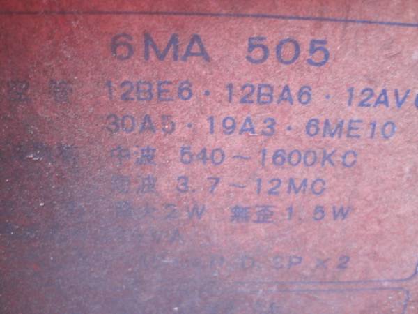 | 6MA505 | スーパー(12BE6-12BA6-12AV6-30A5-19A3-6ME10)/プラキャビ | |||||