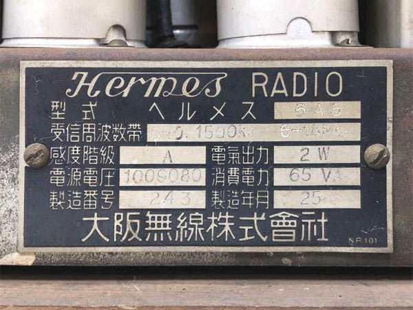 ヘルメス 真空管ラジオ