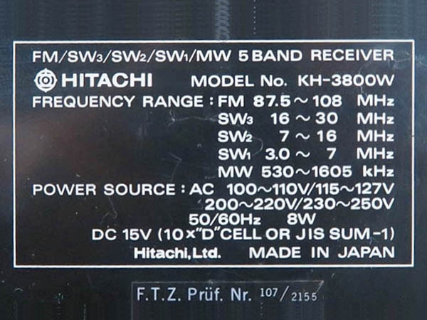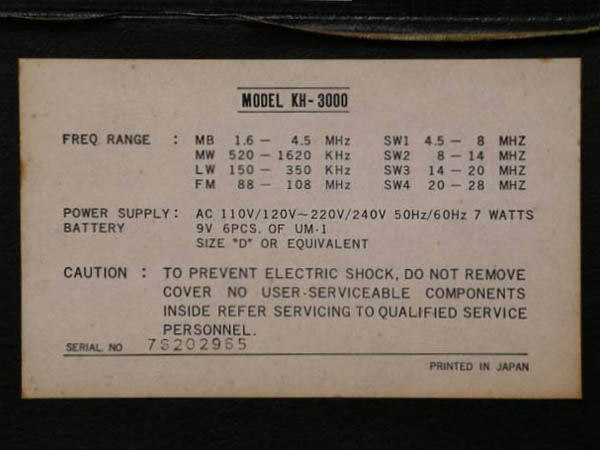 | KH-3800 | º˜a‚T‚R”Ni1978j FM/MW/SW |