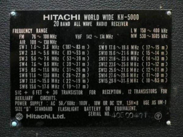 | KH-5000 | FM/AM/LW/SW/VHF/Air |
