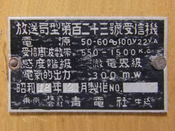 | 放送局型受信機 第11号、第122号、第123号 |