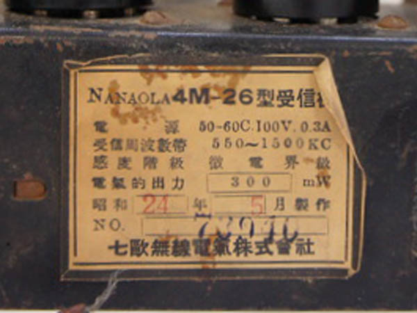 昭和24年(1949) 4球ストレート 「官報 1949/1/1」「4型式合格番号90」 |