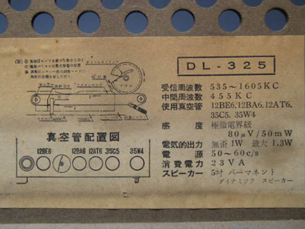 | DL-325 | スーパー(12BE6-12BA6-12AT6-35C5-35W4)/プラキャビ |
