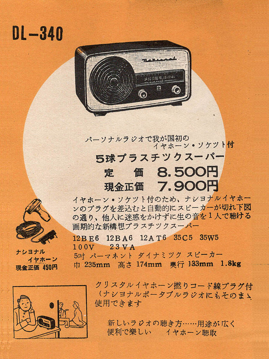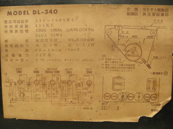 | DL-340 | スーパー(12BE6-12BA6-12AV6-35C5-35W4)/プラキャビ |