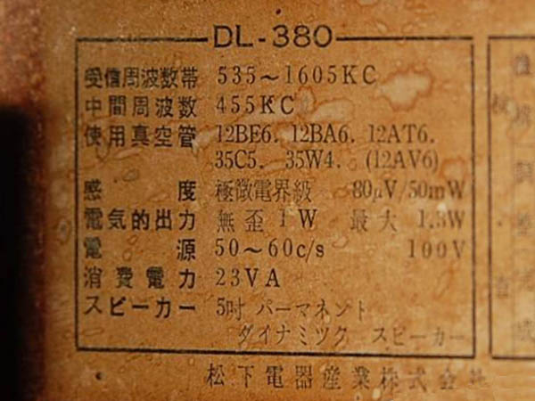 | DL-380 | スーパー(12BE6-12BA6-12AT6-35C5-35W4)/木箱 |
