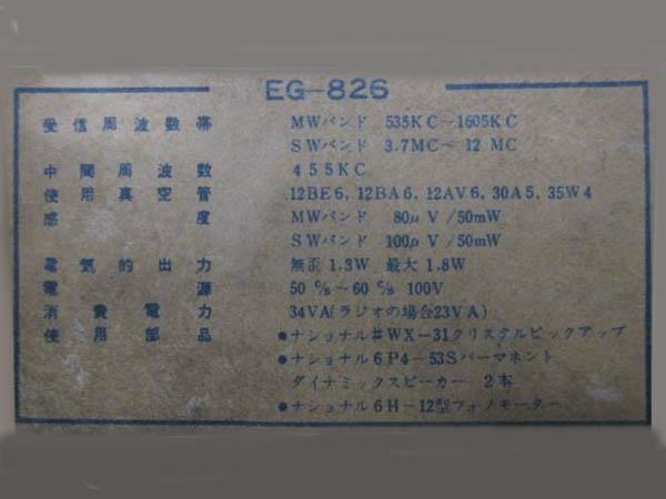 | EG-826 | スーパー(12BE6-12BA6-12AV6-30A5-35W4)/木箱/蓄音器 |