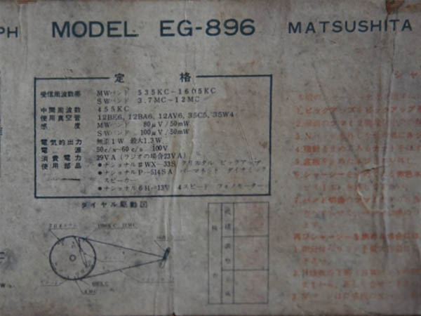 | EG-896 | スーパー(12BE6-12BA6-12AV6-35C5-35W4)/プラキャビ/蓄音器 |