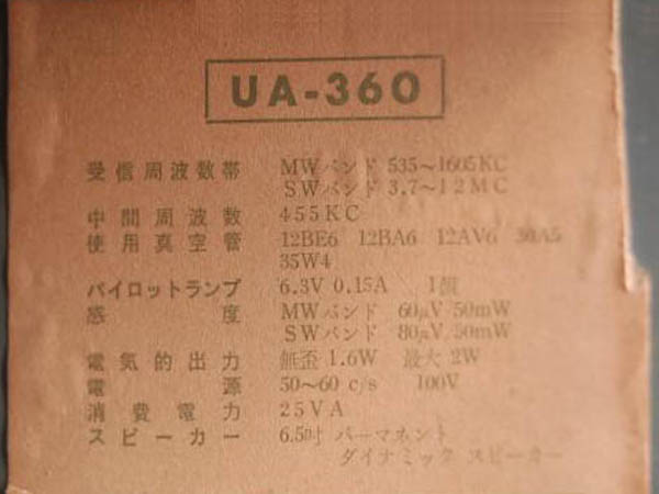 | UA-360 | スーパー(12BE6-12BA6-12AV6-30A5-35W4)/プラキャビ |