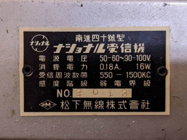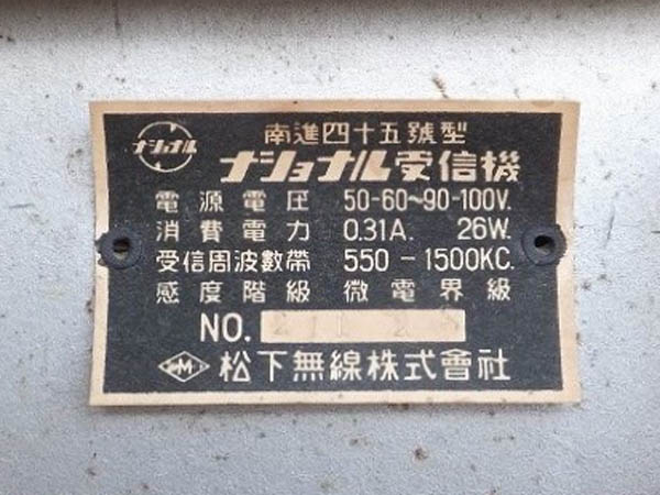 ナショナル 真空管ラジオ 『