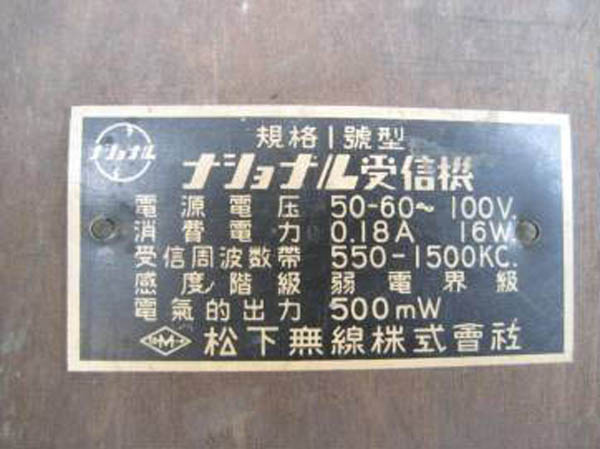 ナショナル 真空管ラジオ 『