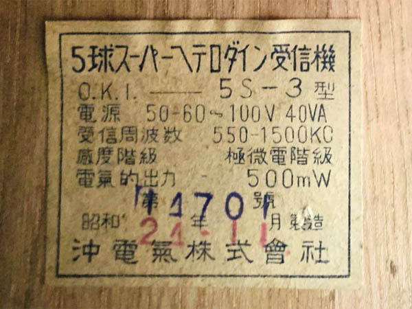 沖 真空管ラジオ 『