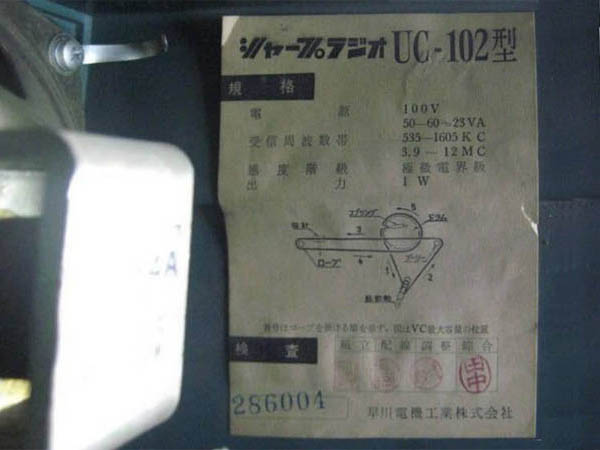 | UC-102 | 昭和37年(1962) スーパー(12BE6-12BA6-12AV6-35C5-35W4)/プラキャビ |