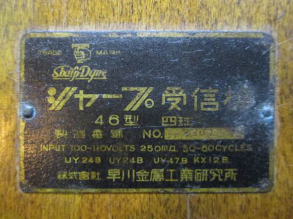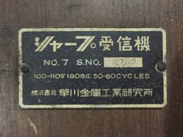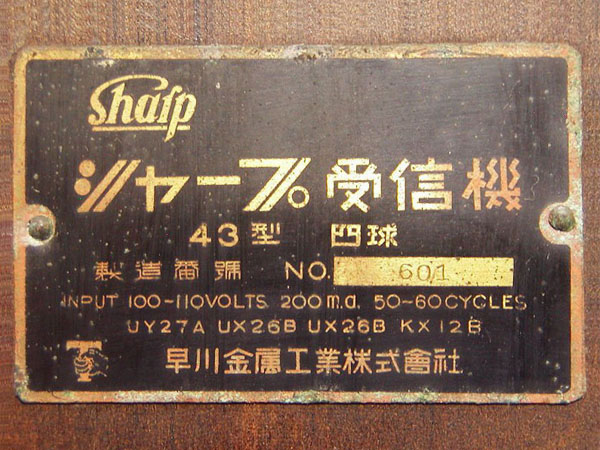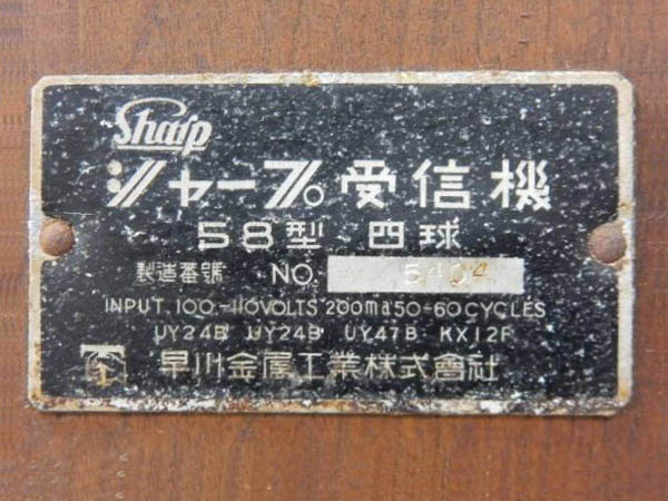 | シャープ真空管ラジオ 『数字』 シリーズ |