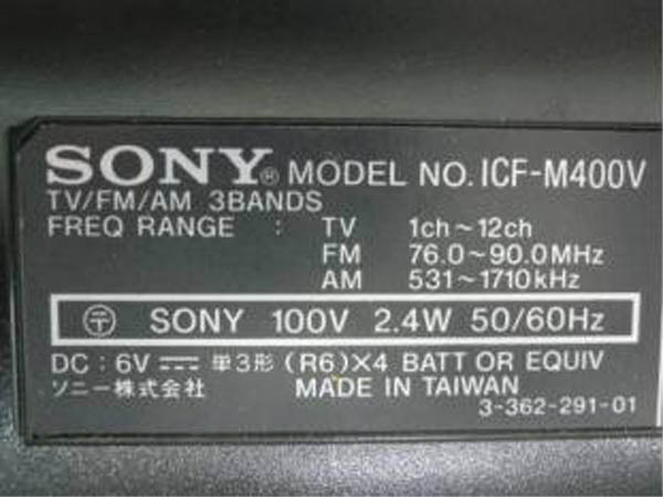 | ICF-M400V | FM/AM/TV |