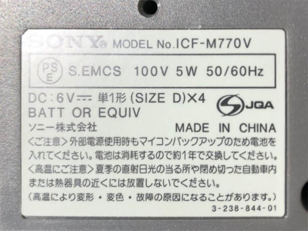 | ICF-M300V | 昭和63年(1988) FM/AM/TV |