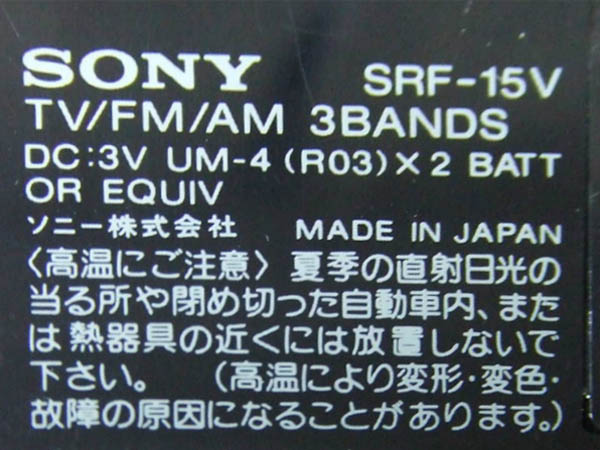 | SRF-15V | 昭和63年(1988) TV/FM/AM |