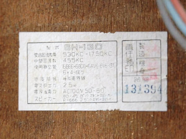 | 6H-130D | 昭和32年(1957) スーパー(6BE6-6BD6-6AV6-6V6-6X4-6E5)/木箱 |