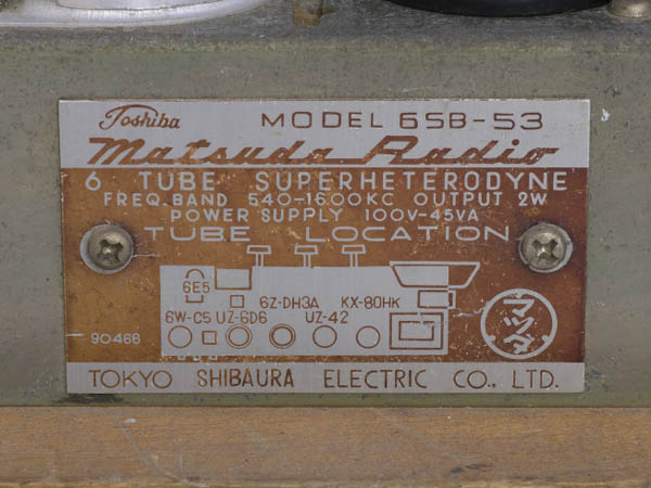 | 6SB-66 | 昭和31年(1956) スーパー(6WC5-6D6-6ZDH3A-42-80HK-6E5)/木箱 タイムスイッチ付き |